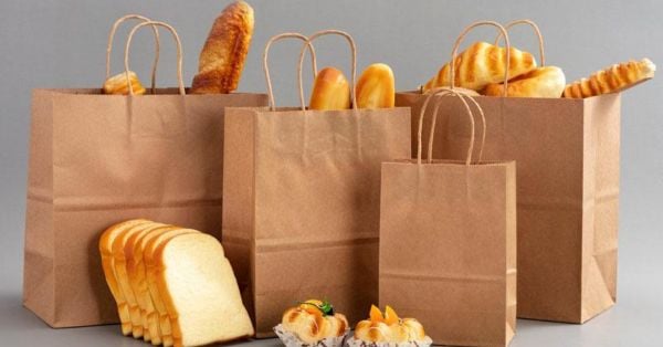 Túi giấy có quai, túi Kraft phân hủy sinh học được đánh giá cao về tính thân thiện môi trường, dùng để đựng các loại đồ khô hoặc đồ ăn nhanh, hỗ trợ dễ dàng mang theo và bảo vệ sản phẩm.