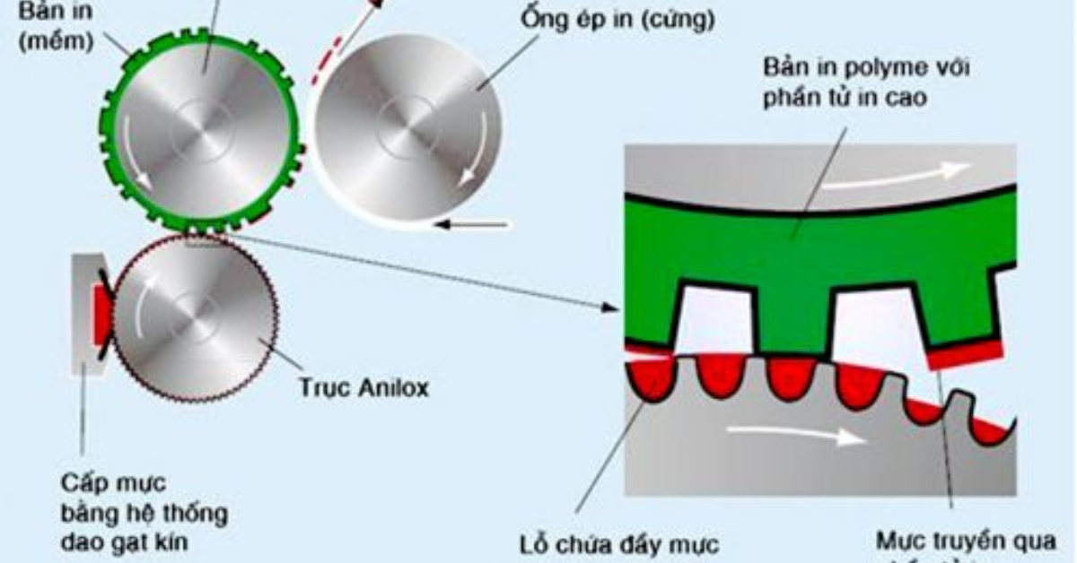 Cơ chế vận hành: mực, trục anilox và khuôn in