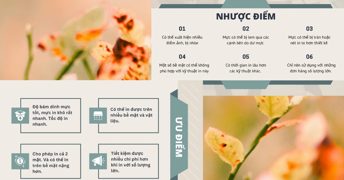 Ngoài ra, thời gian chuẩn bị bản in tương đối lâu, và khi cần thay đổi thiết kế hoặc nội dung in, doanh nghiệp phải tạo bản in mới, gây tốn kém chi phí và thời gian.