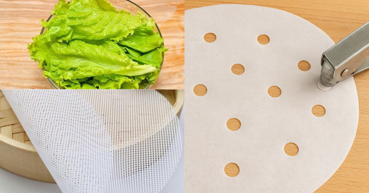Nếu không có sẵn giấy lót hấp dimsum chuyên dụng, bạn vẫn có thể sử dụng một số vật liệu thay thế để đảm bảo món ăn được hấp chín hoàn hảo.