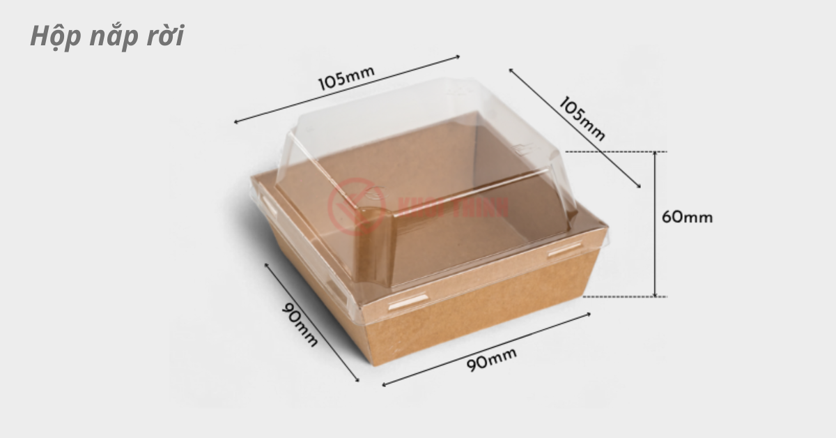 Hộp nắp rời: Dễ tháo và phù hợp cho bánh nhiều tầng hoặc bánh mềm, thiết kế tách nắp giúp đặt bánh vào hộp mà không ảnh hưởng đến mặt bánh.