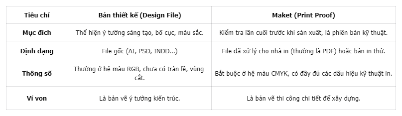 Bảo vệ bạn (khách hàng): Nếu sản phẩm in hàng loạt cuối cùng không giống với maket bạn đã duyệt (ví dụ: sai màu sắc, lệch bố cục), bạn hoàn toàn có cơ sở vững chắc để yêu cầu nhà in chịu trách nhiệm và làm lại.