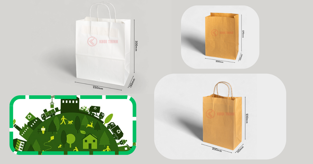 Bạn có thể xem qua các mẫu túi giấy shopping và túi đáy vuông sử dụng giấy Kraft thân thiện môi trường để hình dung rõ hơn về xu hướng xanh trong ngành.