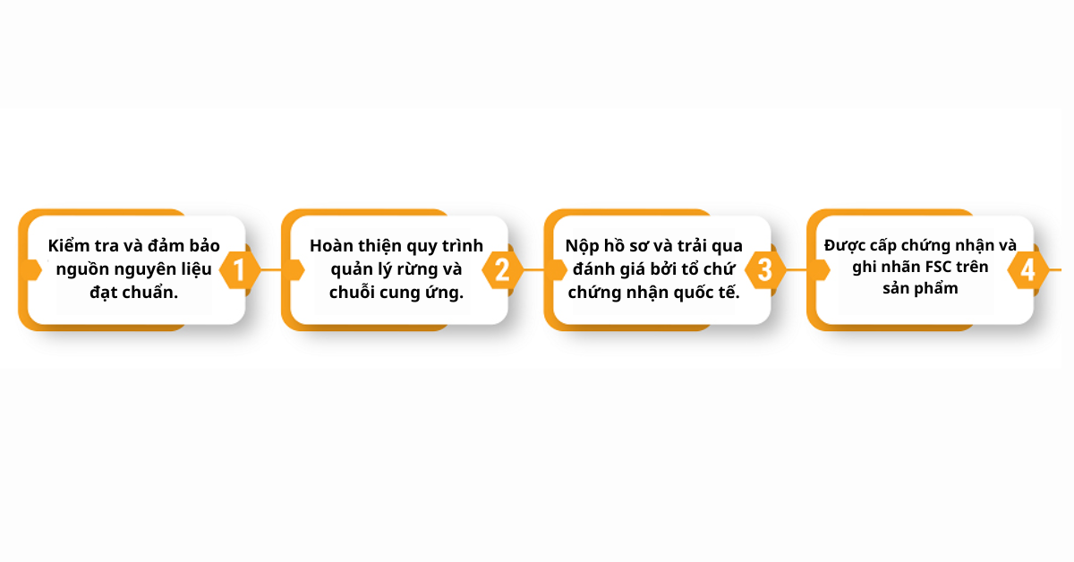 Để đạt chứng nhận FSC, doanh nghiệp cần thực hiện nhiều bước chuẩn hóa từ nguyên liệu đến quản lý quy trình. Việc này đảm bảo các sản phẩm gỗ và giấy đáp ứng yêu cầu quốc tế về nguồn gốc và bền vững. Quy trình cơ bản gồm: