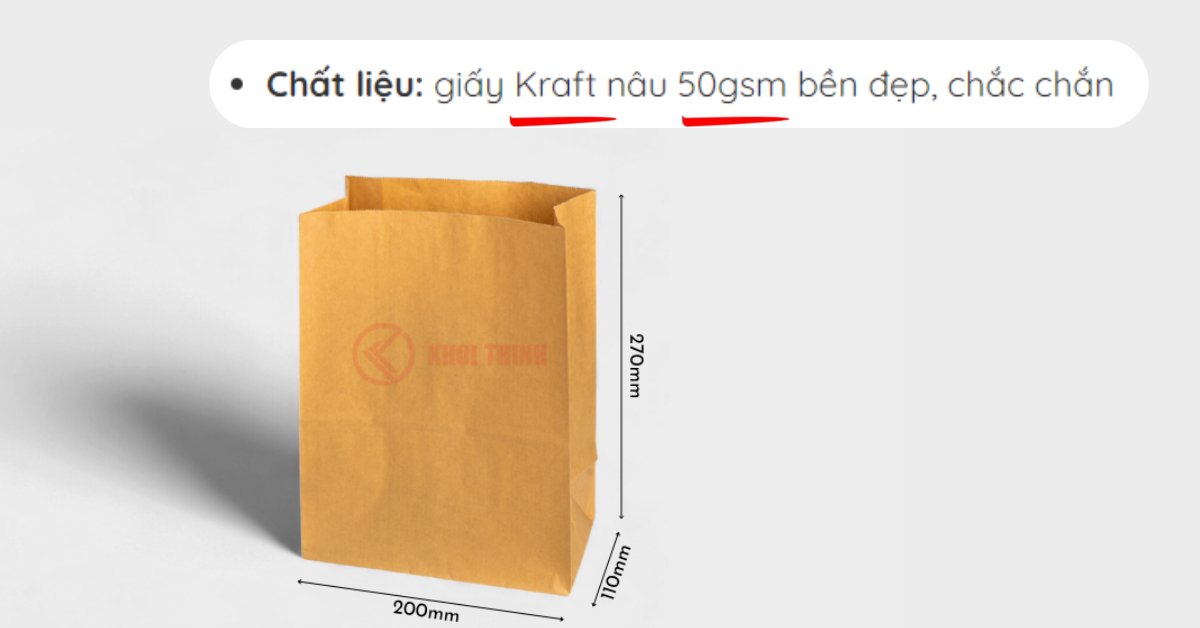 Chọn túi giấy đựng đồ ăn cần cân nhắc độ dày và chất liệu giấy. Giấy Kraft nguyên sinh hoặc tái chế đều đảm bảo an toàn thực phẩm. Định lượng giấy phù hợp giúp túi chịu lực tốt và không bị rách trong quá trình vận chuyển.
