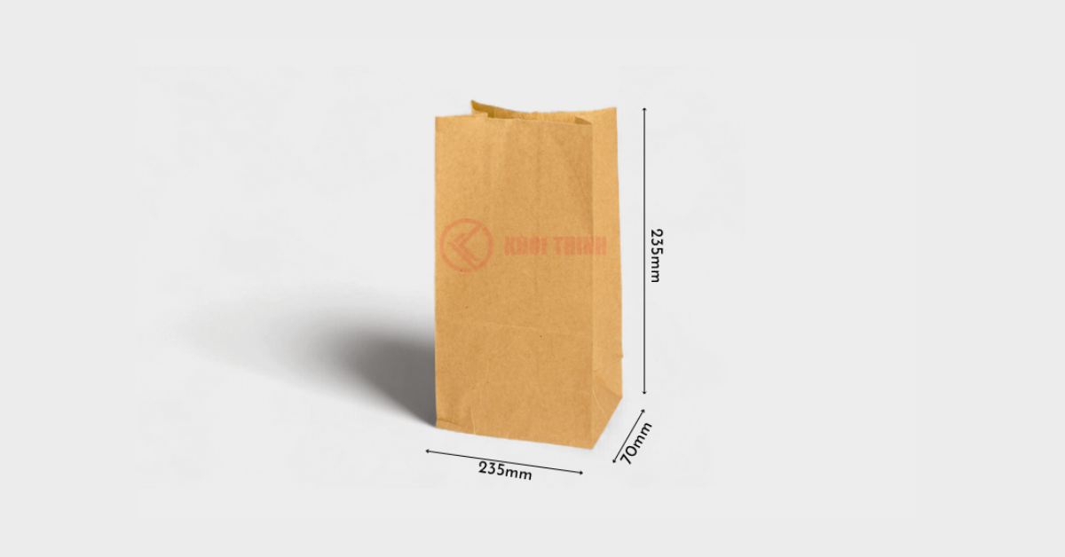 Túi giấy Kraft đơn giản có độ bền cao, phù hợp đựng các loại đồ ăn khô, bánh mì hay đồ ăn nhẹ. Loại túi này dễ sử dụng, giá thành hợp lý và có thể in logo đơn giản. Túi giấy Kraft đơn giản là lựa chọn phổ biến cho các quán takeaway muốn tiết kiệm chi phí mà vẫn đảm bảo chất lượng đóng gói.
