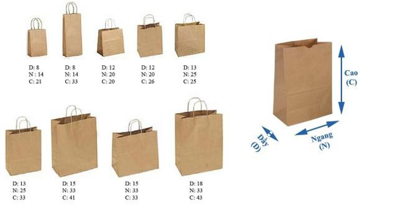 Các kích thước túi giấy phổ biến theo từng ngành hàng